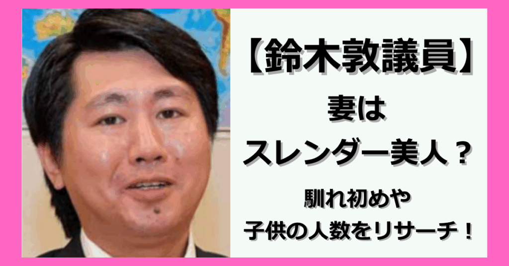 参政党の若手議員として知られている、鈴木敦議員。 街頭演説やSNSでもよく名前を見かけるので、気になっている人も多いと思います。 そこで今回の記事は、 鈴木敦議員の妻はスレンダー美人?鈴木敦議員のと妻の馴れ初めは?鈴木敦議員の子供の人数をリサ... -
