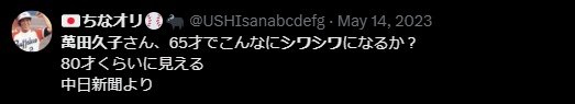しかし近年、テレビ番組やSNSでの姿が話題となり、「老けすぎ」「おばあちゃん化している」という声が上がっているようです。