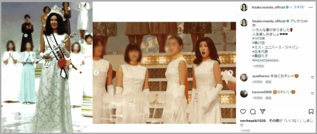 萬田久子さんは、1978年にミス・ユニバース日本代表に選出されたことで広く知られています。