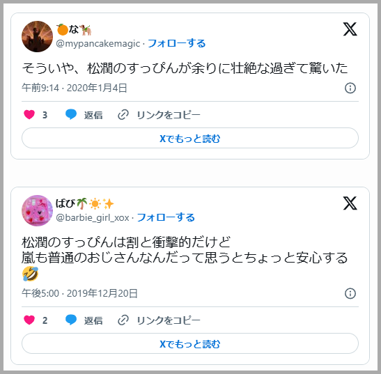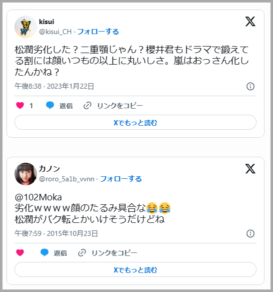 松本潤さんはイケメンというイメージが定着しているため、その衝撃は大きかったようです。
