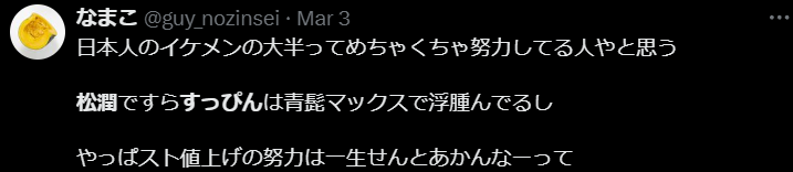しかし、スーパーアイドルの「松本潤さんのすっぴんがおじさん」と言われているようです。
