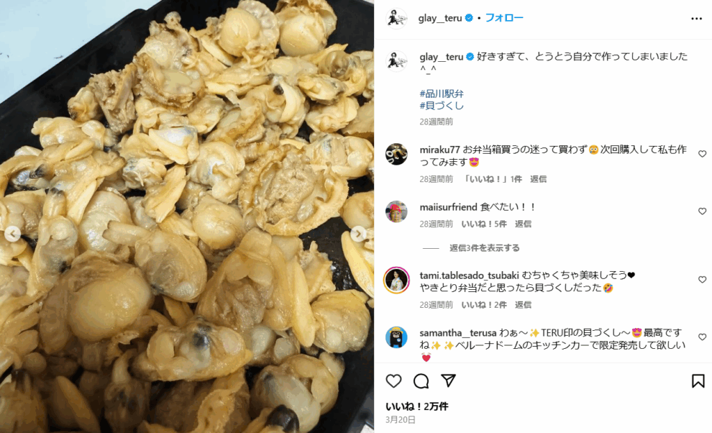 TERUさんは料理が趣味で、メンバーが絶賛するほど美味しい料理を作っています。