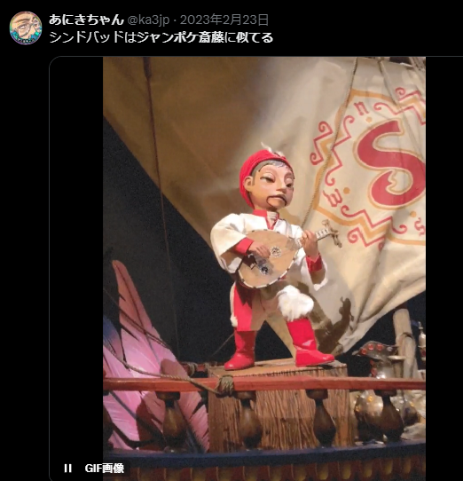 斉藤メンバーに似てるキャラクター1つ目は人形劇の「シンドバッド」です。