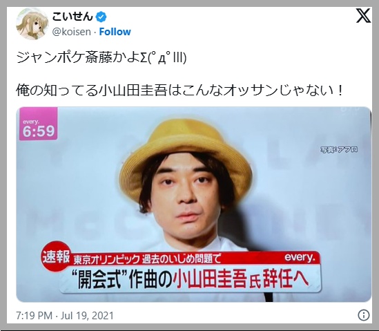 Xでは「ジャンポケ斎藤と小山田 圭吾さんが似てる」と話題になっていましたのでご覧ください。
