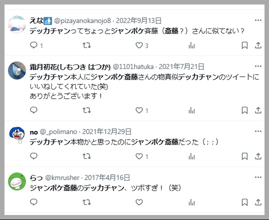 Xでは「ジャンポケ斎藤とデッカチャンが似てる」と話題になっていました。