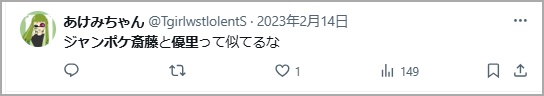 Xでは「ジャンポケ斎藤と優里さんが似てる」と話題になっていました。