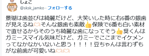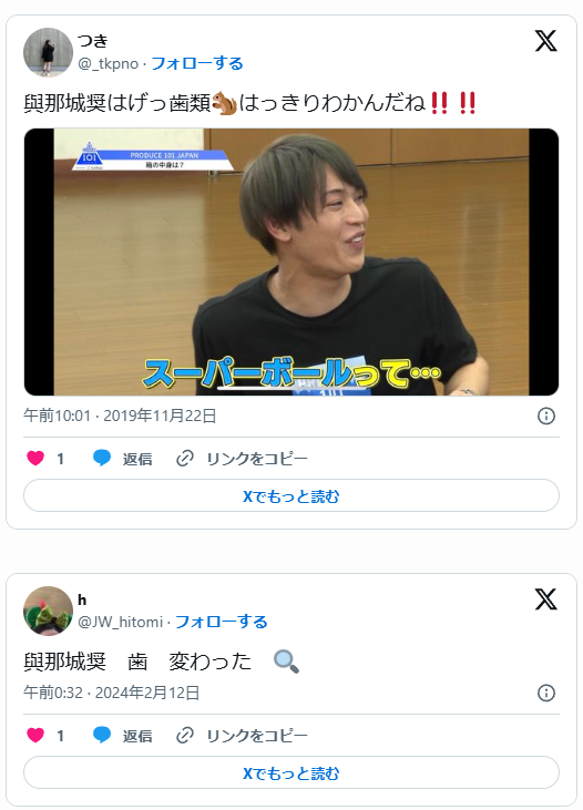 このように、與那城奨さんの「歯」についての意見が多数ありました。