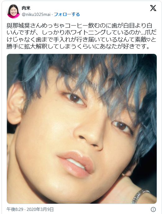 與那城奨さんの「歯」が不自然なほどに綺麗で白いことが、気になる要因の一つとなっているようです。