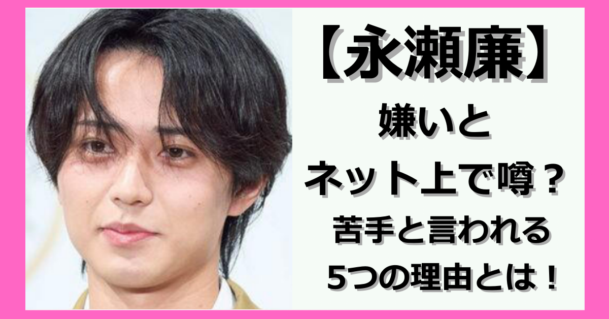 アイドルユニット「King & Prince」のメンバー・永瀬廉さん。 国宝級イケメンとも言われ、絶大な人気を誇っていますね。 そんな永瀬廉さんに、「嫌い」「苦手」という声も上がっているようです。 人気アイドルに、なぜこのような声があがっているので... -