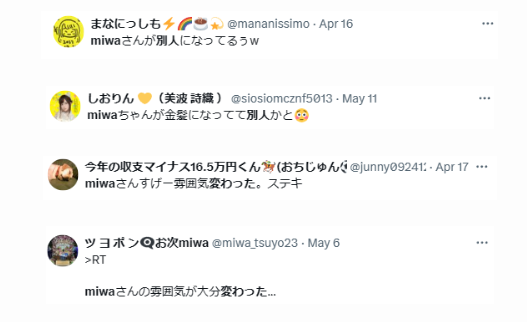 miwaさんの雰囲気が変わった理由は、以下の理由が考えられます↓