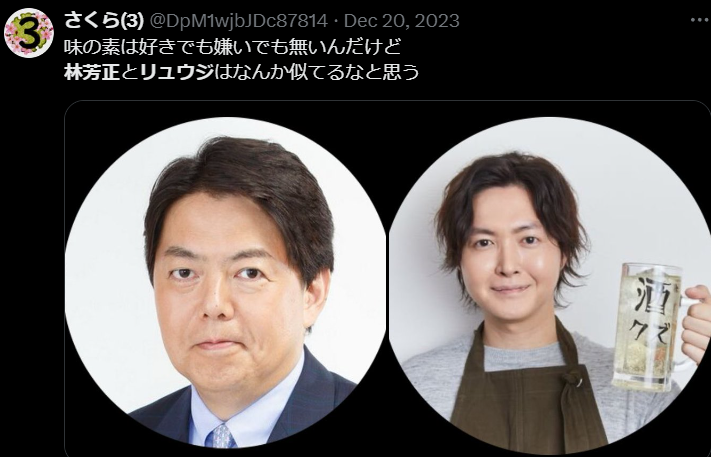 そんなリュウジさんと林芳正さんが似ていると言われていました↓