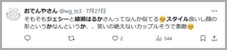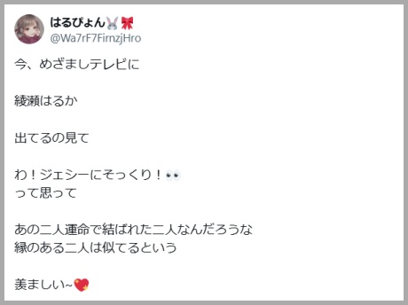 Xでは綾瀬はるかさんとジェシーさんのお顔の形が似てるという声が寄せられていました。
