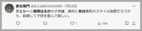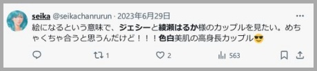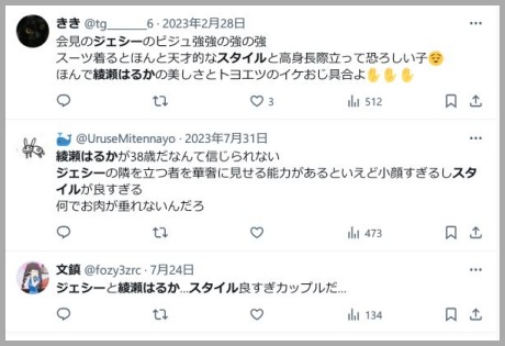 Xでは下記のように綾瀬はるかさんとジェシーさんのスタイルが良いという声が多数寄せられていました。