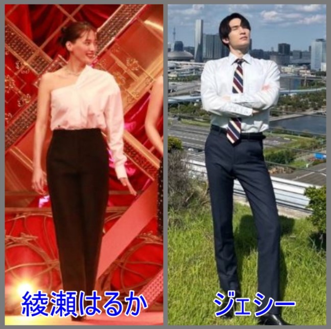 ジェシーさんの身長は184㎝で、綾瀬はるかさんは166㎝です。