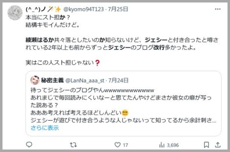 ジェシーさんと綾瀬はるかさんは「文章の書き方が似てる」と言われています。