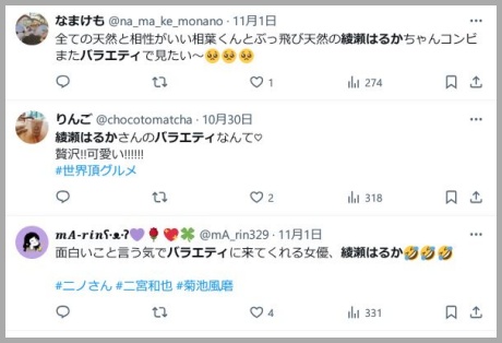 Xでも綾瀬はるかさんとジェシーさんは「二人とも美肌だ」という声が寄せられていました。