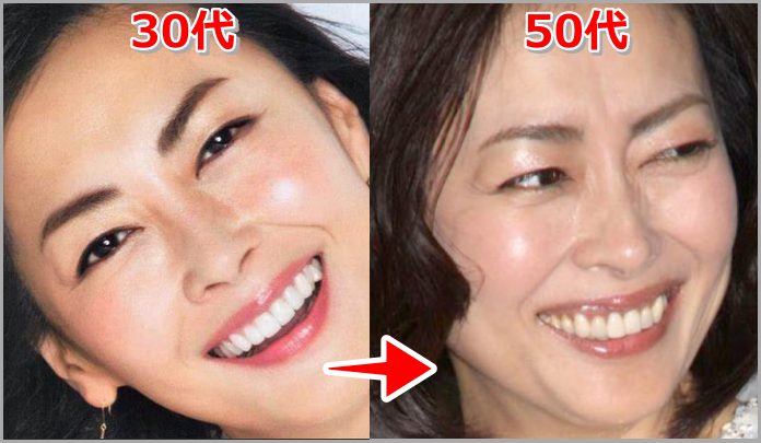 しかし、50代の中山美穂さんの歯は若干黄色くなっていました。