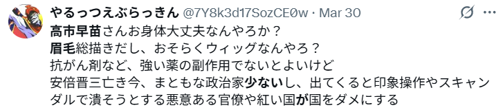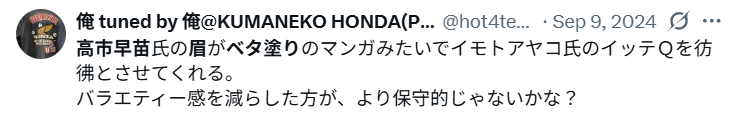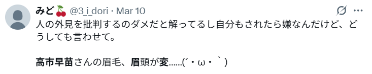 世間の方からは、「高市さんの眉毛が変」「おかしい」などの声が上がっているようです。