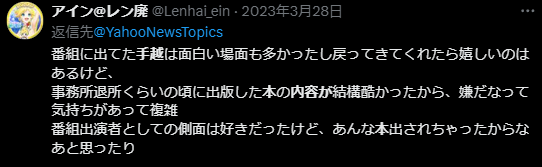 - 深い洞察の不足:単なる暴露や批判に終始し、芸能界や人生に対する深い洞察が不足しているという指摘がありました。