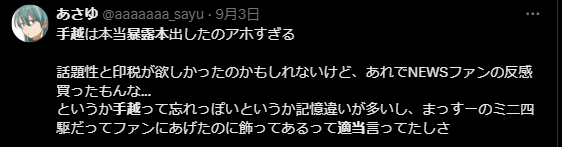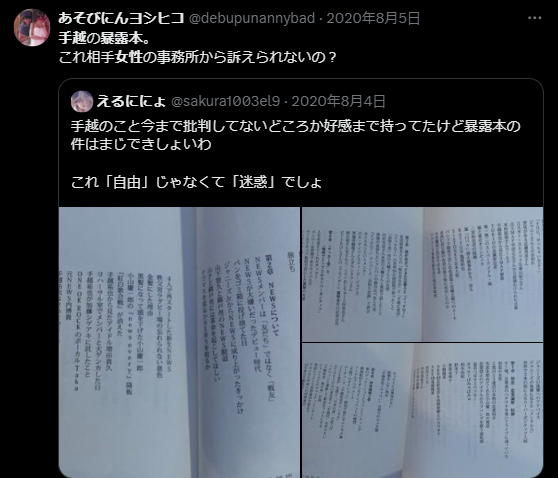 手越祐也さんの暴露本に対して批判が殺到し、炎上した理由は、以下のとおりです↓