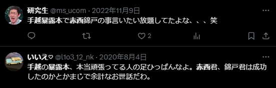 さらに、このような内容が「お金儲けのために他人の過去を晒している」という批判にもつながり、手越さんの人間性や倫理観を疑問視する声も上がりました。