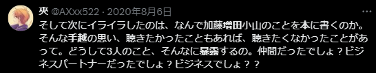 ですが、SNS上では、この暴露本の内容について、「許せない」という声が多数見受けられます。