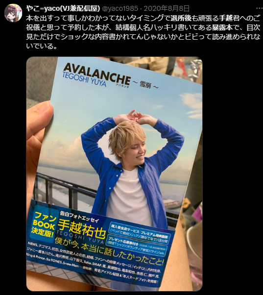 手越祐也さんの暴露本『AVALANCHE〜雪崩〜』は、発売当初から大きな話題を呼び、賛否両論を巻き起こしています。