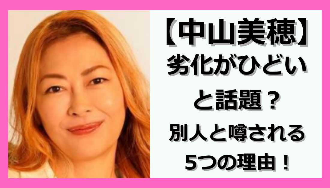 女優や歌手として活躍中の中山美穂さん。 若い頃から「みぽりん」の愛称で親しまれ、全盛期にはアイドル四天王として人気を博しました。 そんな中山美穂さんも50代に突入されていますが「劣化した?」「劣化がひどい」と話題に上がっているようです。 一体... -