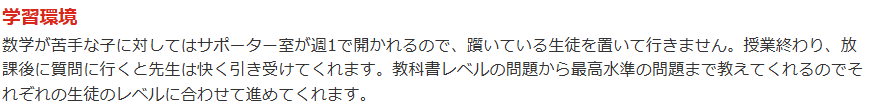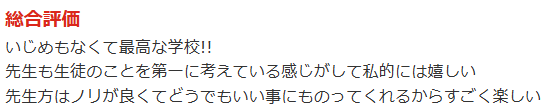 口コミを見ると、いじめがないことや学習環境が良いという意見がありました↓