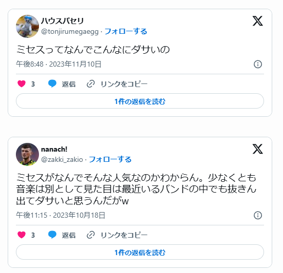そんなミセスはビジュアルに注目が集まる一方で、「ダサい」とも言われているようです。