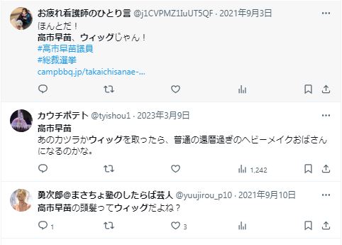 ですが、そんな高市さんについて、「髪の毛はカツラではないか?」と疑う声もあるようです。