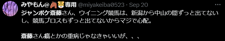 また、斎藤さんが8月上旬から体調不良を理由にレギュラー番組を欠席し始めたタイミングが、角田騎手の死去と重なることから、