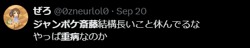 ジャンポケ斎藤こと斎藤慎二さんの体調不良が話題となっています。